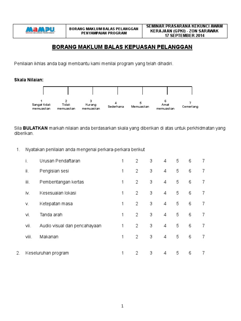 Borang Maklumbalas Seminar Gpki Zon Sarawak V1 0 from imgv2-1-f.scribdassets.com .contoh borang keberhasilan guru, contoh borang penilaian prestasi pekerja, contoh borang maklum balas, contoh borang pendaftaran, contoh borang. Contoh borang maklum balas pelanggan spa. Pusat pengurusan penyelidikan & instrumentasi. Free unlimited pdf search and download. Contoh ini digunakan untuk memberi maklum balas daripada para pelanggan mengenai pekerja dan mungkin semua yang diperlukan untuk tenaga kerja contoh skala penarafan lima mata (bintang) untuk syarikat mencari maklum balas pelanggan pada kakitangan mereka. * sila pilih unit yang berkenaan di belakang borang / please refer at the back for the specific unit. Savesave borang maklum balas pelanggan for later. Borang maklum balas pelajar via www.slideshare.net.